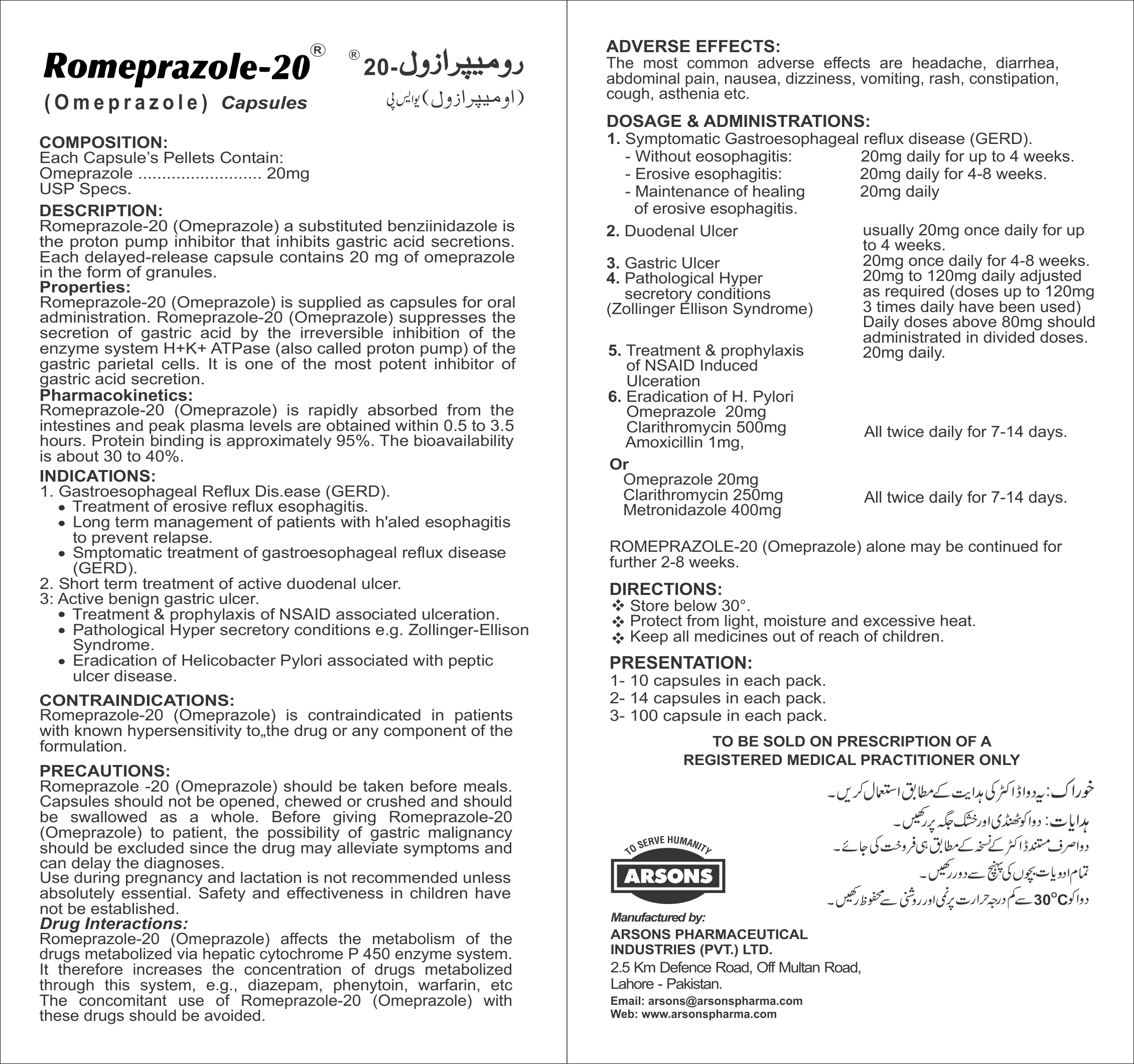 Romeprazole is used to treat certain stomach and esophagus problems (ulcers and reflux). It is used to relieve symptoms such as heartburn, difficulty swallowing and persistent cough. This medication helps heal acid damage to the stomach and esophagus, helps prevent ulcers and may help prevent cancer of esophagus.